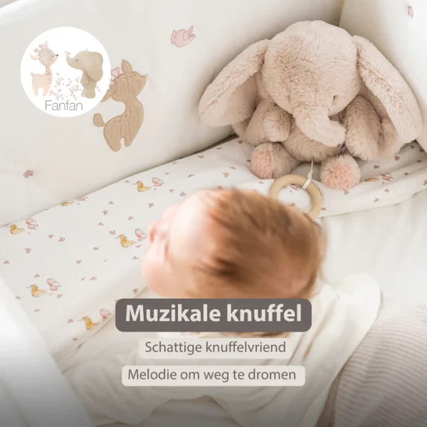 - Muziekknuffel in de vorm van een olifantje in zandkleur