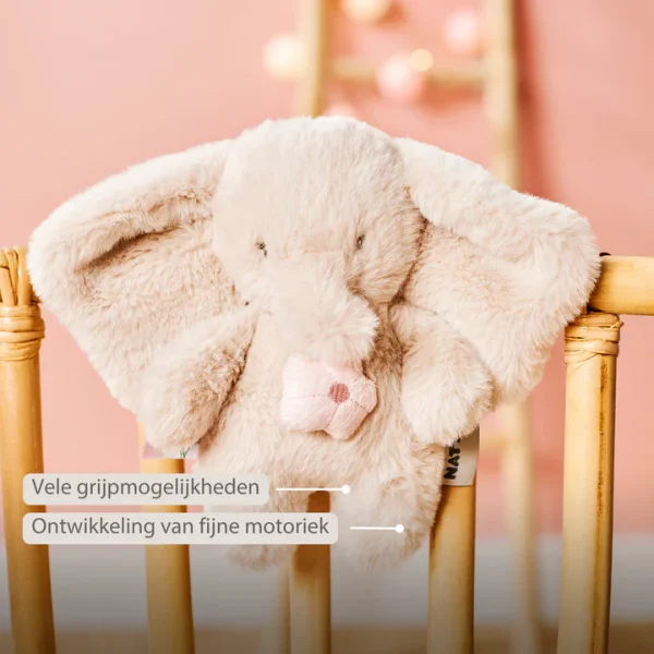- Mini-muziekknuffel in de vorm van een zandkleurig olifantje